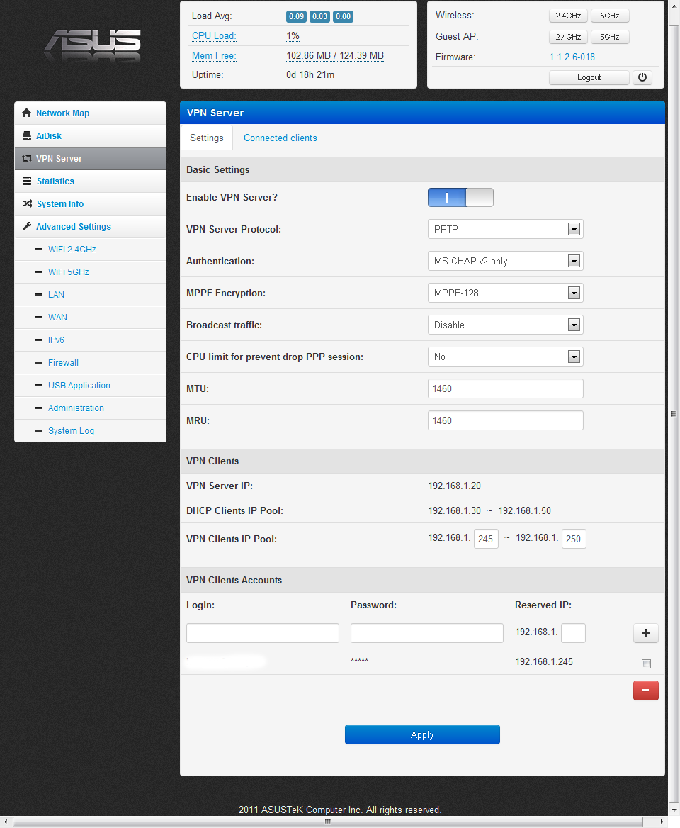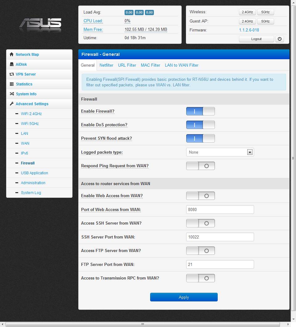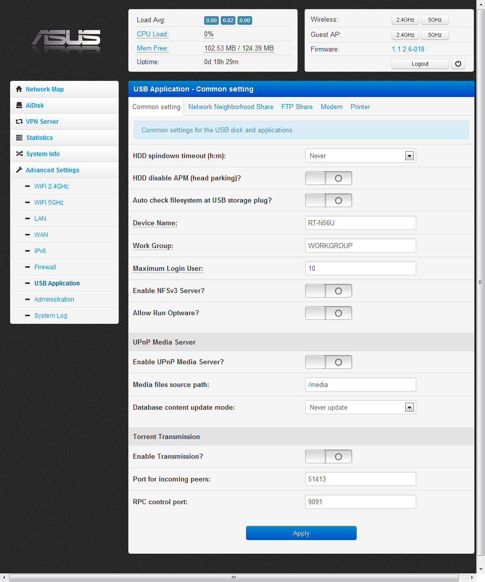 Hier noch einige Bilder und Screenshots vom Router ASUS RT-N56U mit der Custom Firmware RT-N56U_1.1.2.6-018.