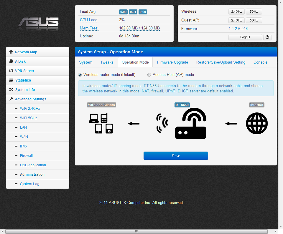 ASUS RT-N56U mit Firmware RT-N56U_3.0.2.6-018 (en-ru). IPv6+IPv4. Linux kernel 3.0.43