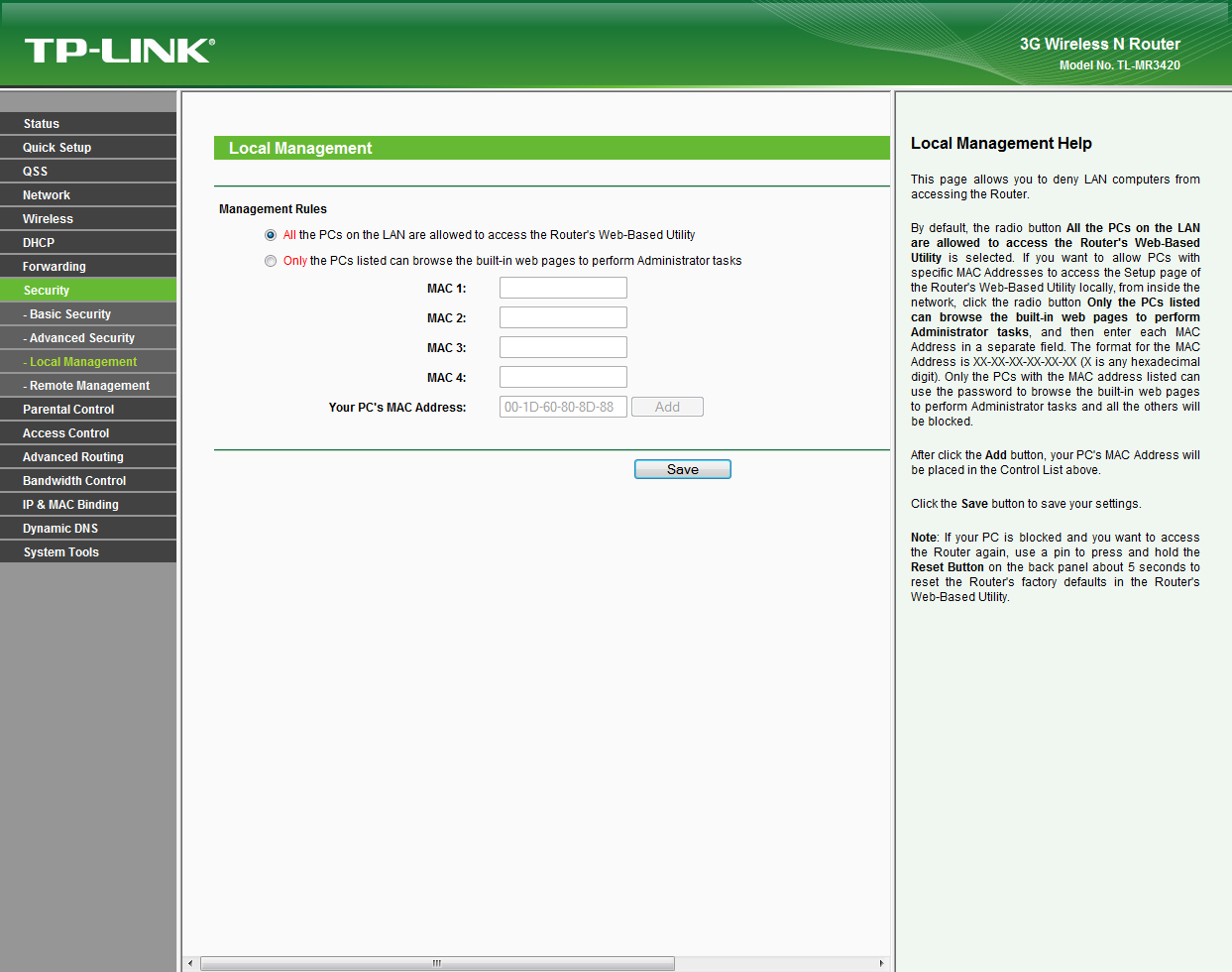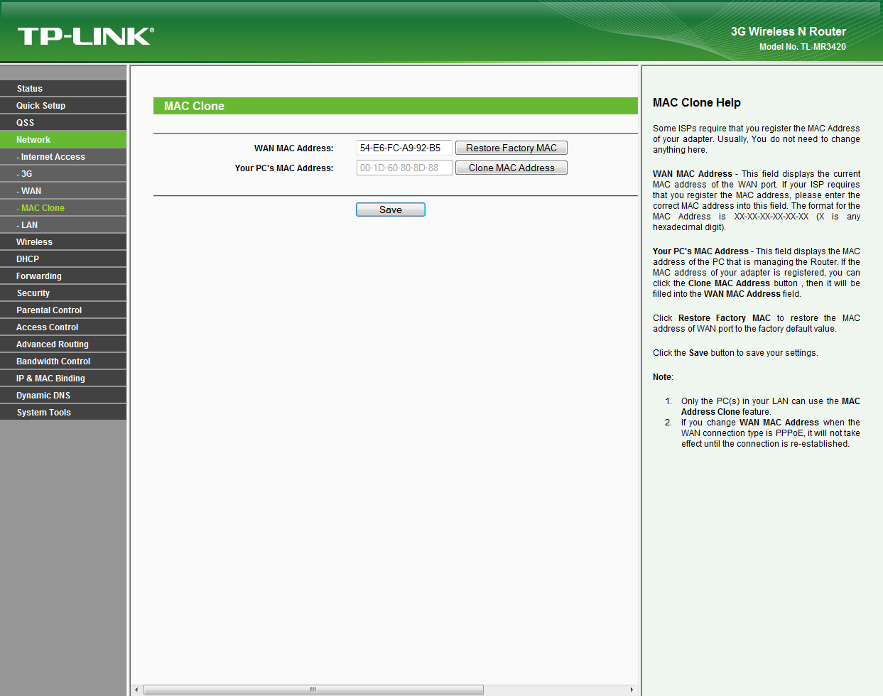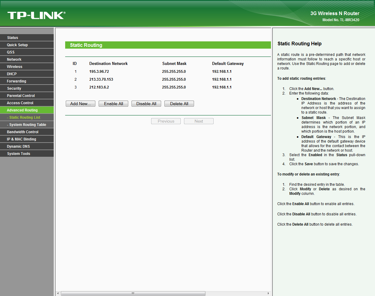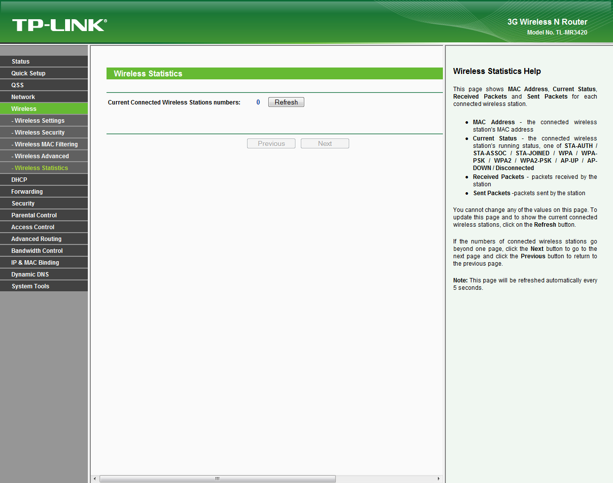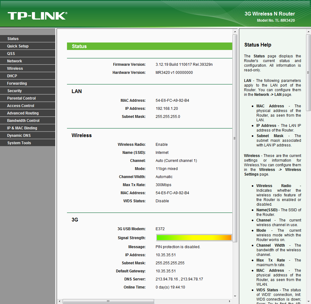 Hier nun einige Screenshots der Weboberfläche vom TP-Link TL-MR3420 Router