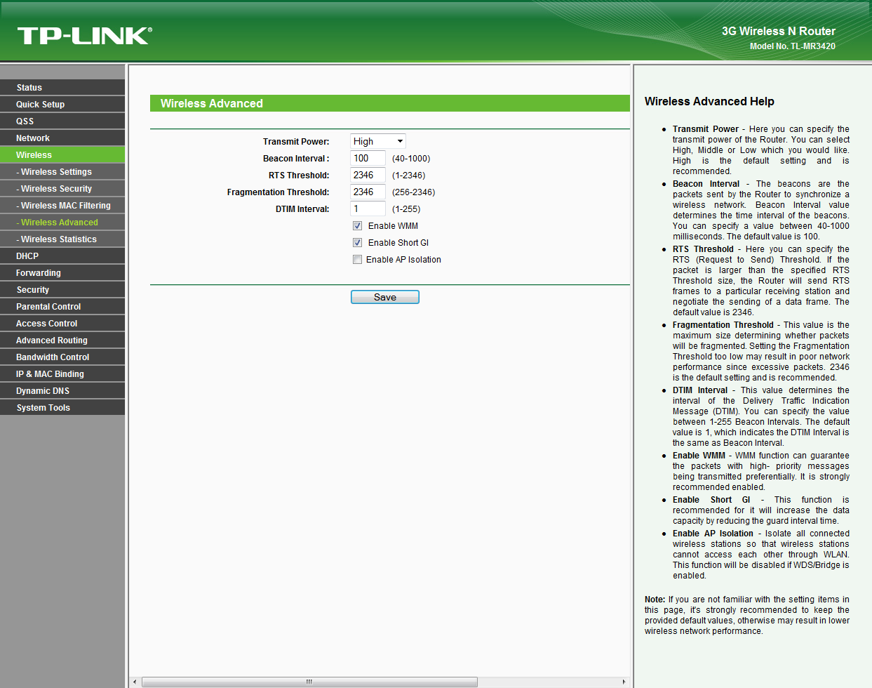 Optimierung der Geschwindigkeit TP-Link TL-MR3420: