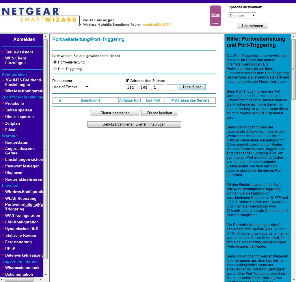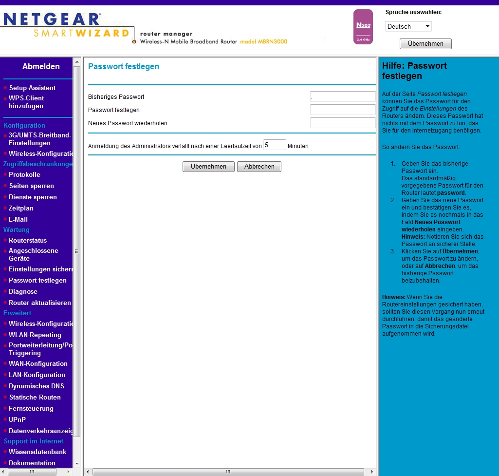 Netgear MBRN3000 Benutzername und Paßwort: